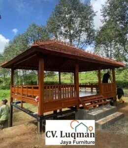 Wujudkan area relaksasi impian Anda dengan Gazebo Kayu Jati berkualitas tinggi ini! Segera hubungi CV. Luqman Jaya Furniture hari ini untuk konsultasi desain kustom dan dapatkan penawaran harga terbaik untuk pengiriman dan pemasangan di lokasi Anda. Pesan sekarang, kami siap melayani seluruh Indonesia!