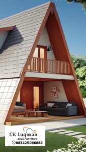 CV. Luqman Jaya Furniture siap melayani konsultasi desain dan pembangunan Kabin A-Frame ini sesuai dengan spesifikasi dan lokasi Anda. Segera jadikan properti Anda berbeda dan memorable dengan desain yang ikonik ini.