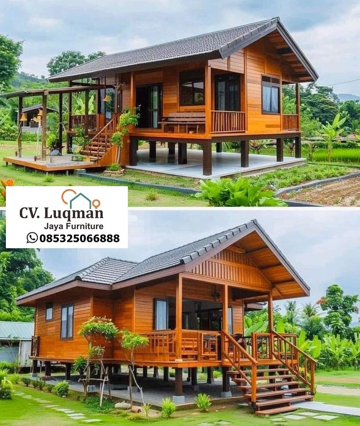 - Model: Rumah Panggung Kayu (Kabin/Vila)