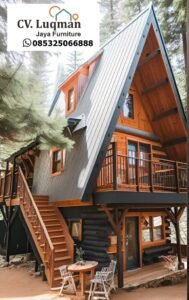 Tidak hanya itu, struktur rumah juga kami bangun dengan material kayu berkualitas tinggi sehingga rumah tetap kokoh dalam berbagai kondisi cuaca. Dengan demikian, rumah segitiga kayu ini sangat ideal sebagai villa pribadi, tempat glamping premium, atau hunian liburan yang menghadirkan ketenangan maksimal. Kini saatnya Anda memiliki rumah bernilai estetika tinggi yang siap meningkatkan kenyamanan hidup.