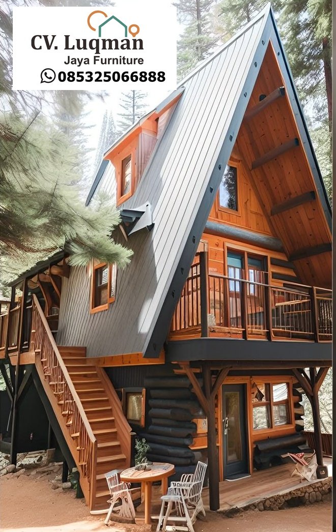 Rumah segitiga kayu dua lantai ini menawarkan desain modern yang elegan dengan struktur kayu berkualitas tinggi, jendela besar, dan pembagian ruang yang sangat fungsional. Memiliki teras luas, balkon lantai dua, serta nuansa hangat yang cocok untuk villa, glamping, atau hunian pribadi. Dibangun dengan material kokoh dan finishing estetik, rumah ini menjadi pilihan ideal untuk Anda yang menginginkan hunian unik serta nyaman di tengah alam.