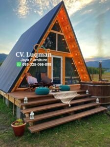 Wujudkan impian memiliki rumah bergaya modern alami bersama CV. Luqman Jaya Furniture! Dapatkan Rumah Segitiga Kayu Jati yang elegan, kuat, dan menenangkan. Hubungi kami sekarang untuk desain custom sesuai keinginan Anda!