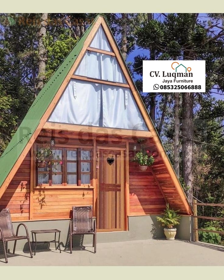Villa Segitiga Kayu Jati Minimalis Modern ini menawarkan desain estetik yang hangat dan alami. Terbuat dari kayu jati solid dengan struktur kuat, cocok untuk villa pribadi, glamping, atau rumah liburan yang elegan dan nyaman.