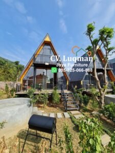 Villa Segitiga Kayu Jati Modern – Hunian Estetik untuk Bisnis Glamping & Resort
