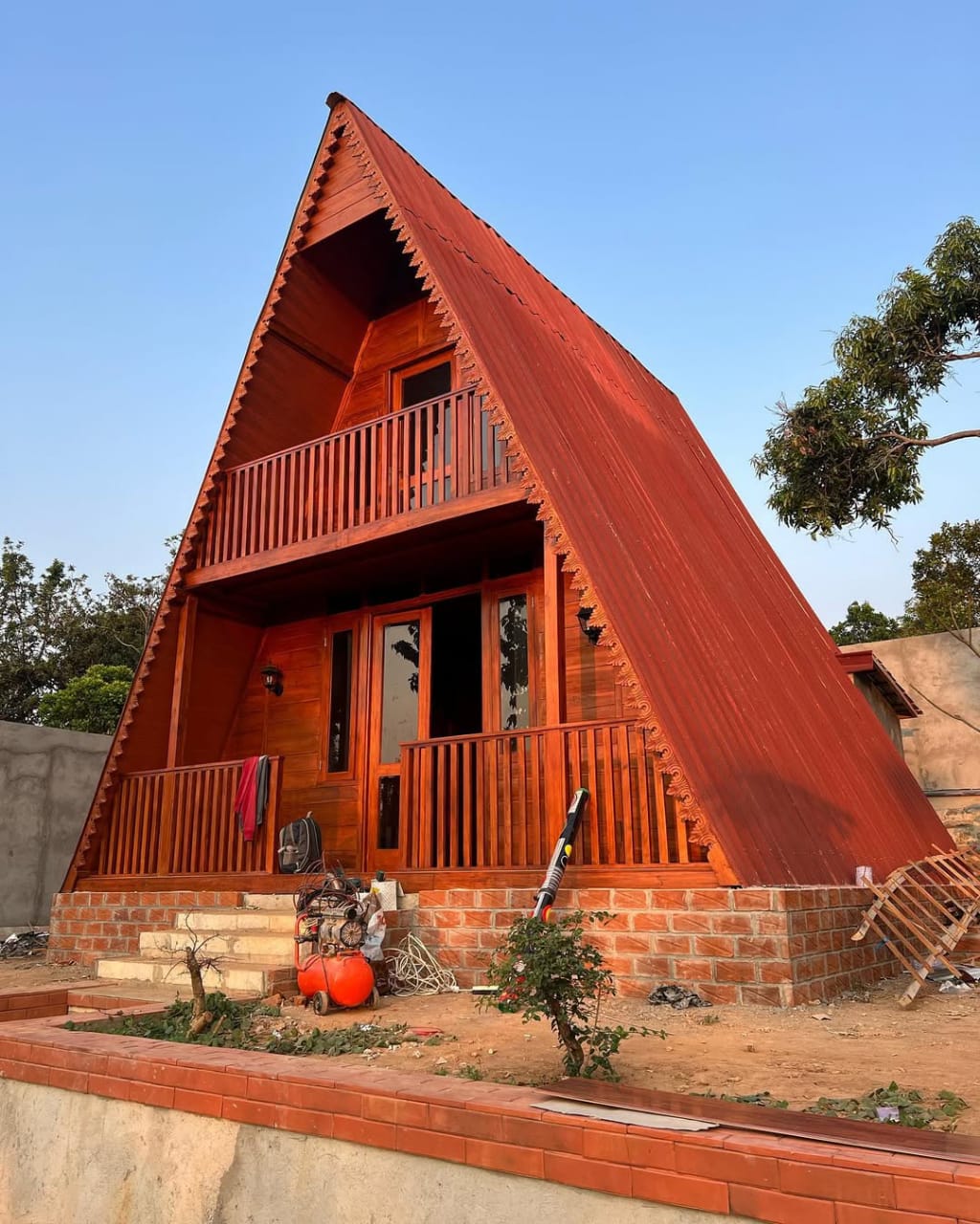 Villa segitiga modern bergaya A-frame dengan bahan kayu jati berkualitas tinggi. Desain elegan, kokoh, dan ramah lingkungan. Cocok untuk hunian pribadi, villa liburan, maupun investasi properti bernilai tinggi.